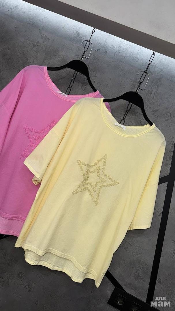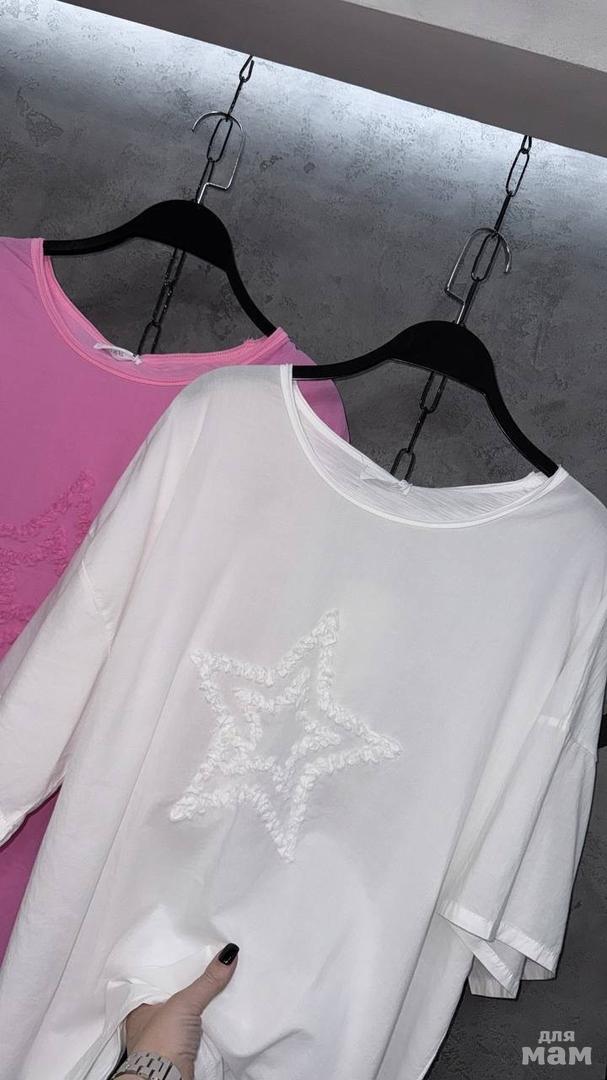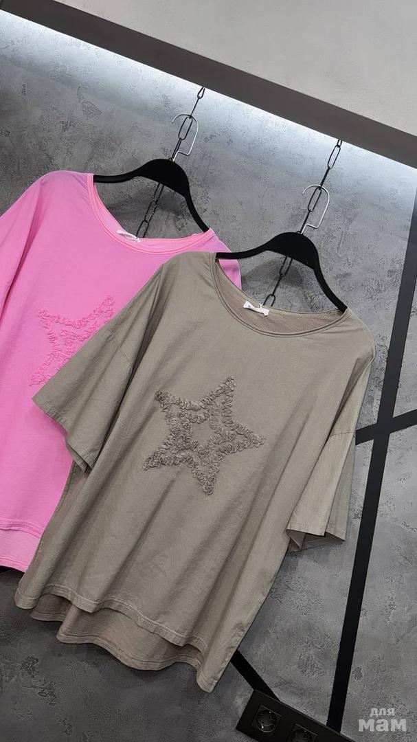 Батальная серия. Легкие комбинированные футболочки из хлопка. Детали: принт вышит. Длина изделия 67 см. Отличное качество, стиль оверсайз . ЦЕНА 800 РУБ