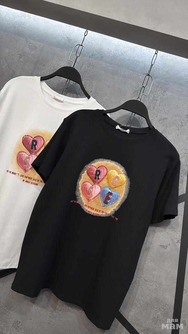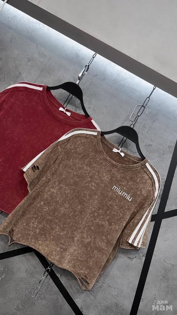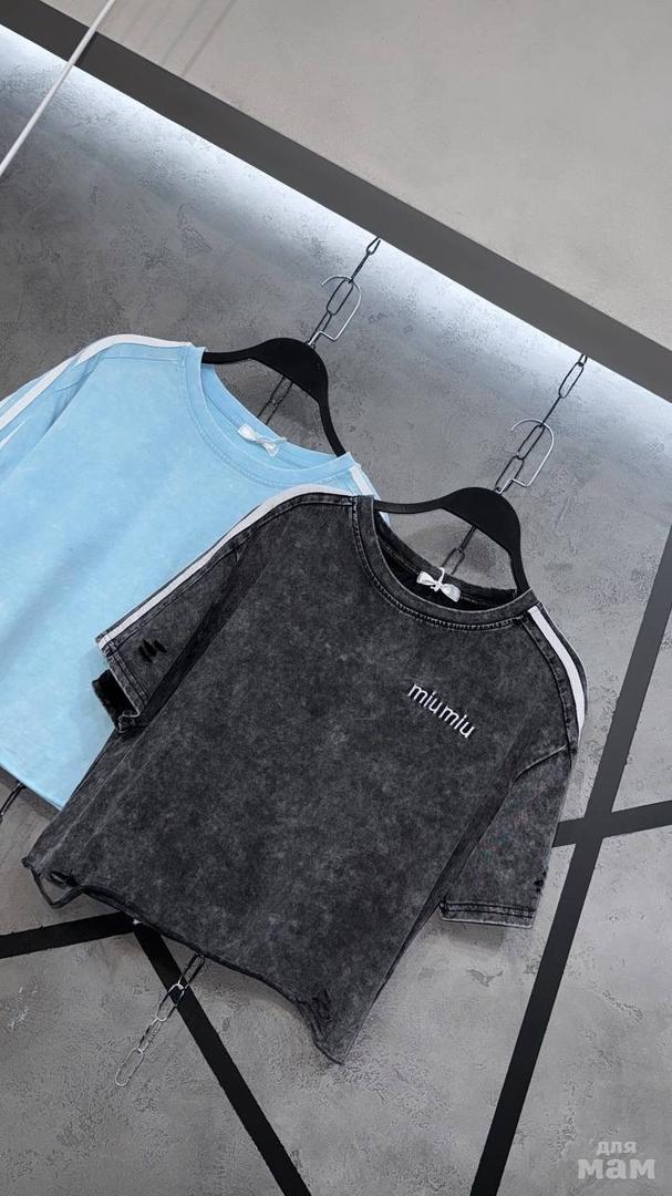 Классные слегка укороченные футболки. Лого бренда вышит.Классное качество. Фото живые. Длина по спинке 52 см. ЦЕНА 800 РУБ