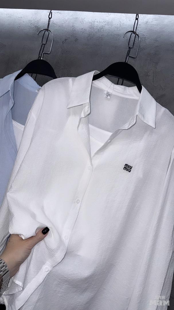 Стильные рубашки в полоску с топом в комплекте. Детали: лого бренда вышит. Фото сделаны в живую. Длина по спинке 73 см, отличное фабричное качество . ЦЕНА 1000 РУБ