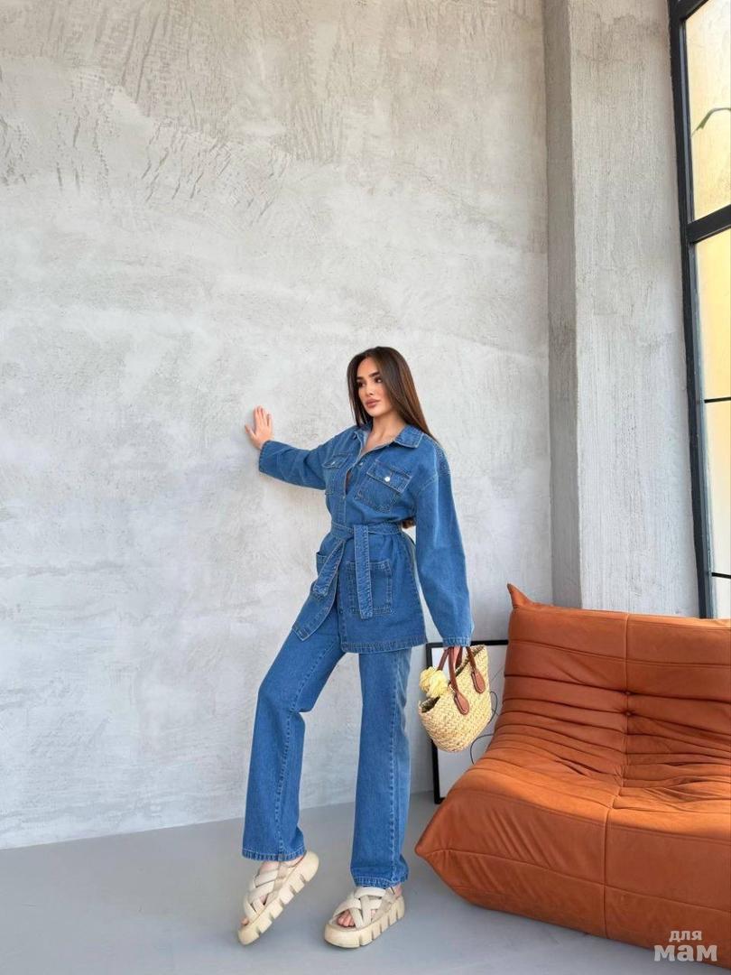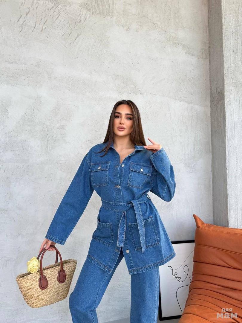 ШОК ЦЕНА. Стильная двойка , которая стала хитом по всей площадке интернета . Будьте неотразимы вместе с Атриум .Ткань Джинса / коттон . Качество люкс. Длина джинсовки 75 см . Длина рукава 52 от шва см . Длина штанин 110 см . Пояс в комплекте . Производство Турция . Арт 0007-1. ЦЕНА 1500 РУБ