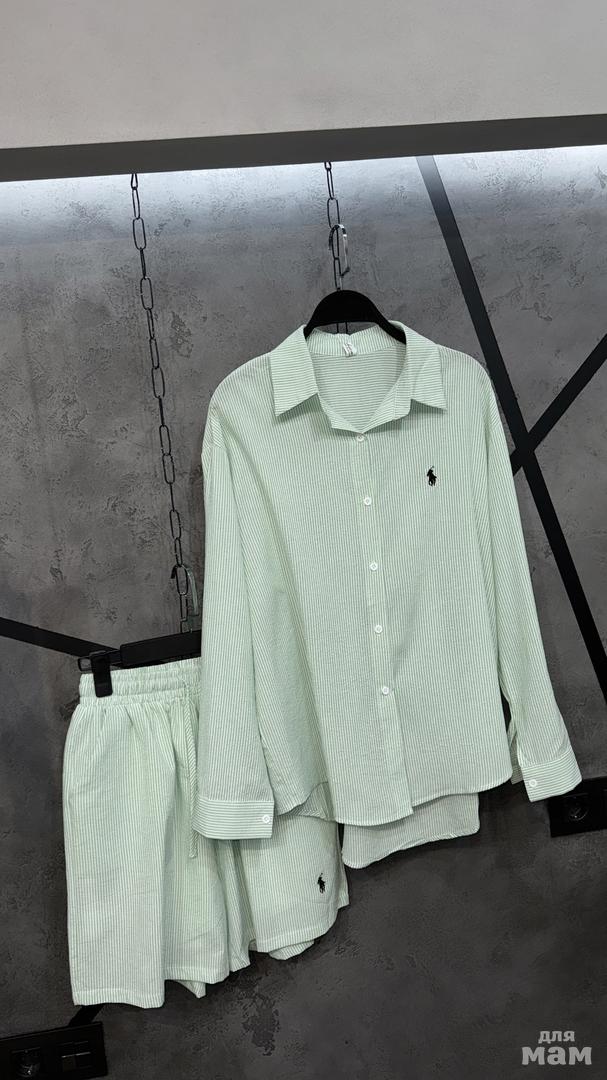 Классные, лёгкие, удобные костюмы с шортиками. Со значком m i u . Есть рабочие кармашки. Лого бренда вышит. Длина рубашки по спинке 71 см, длина шорт 44 см. ЦЕНА 1400 РУБ