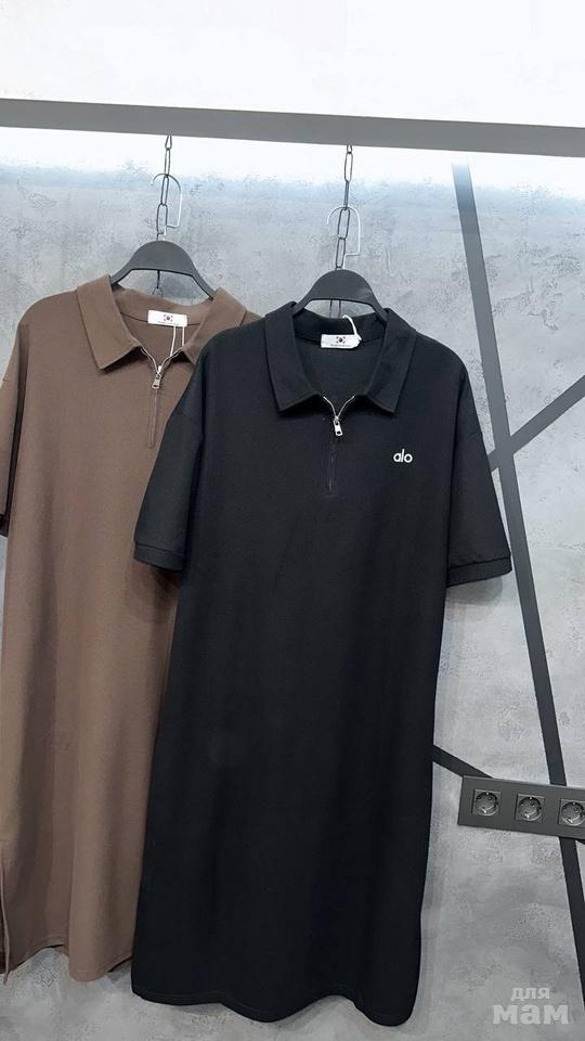 Платье-туника с вышитым лого бренда. По бокам небольшие разрезы. Фото реальные, длина по спинке 110 см. ЦЕНА 1100 РУБ