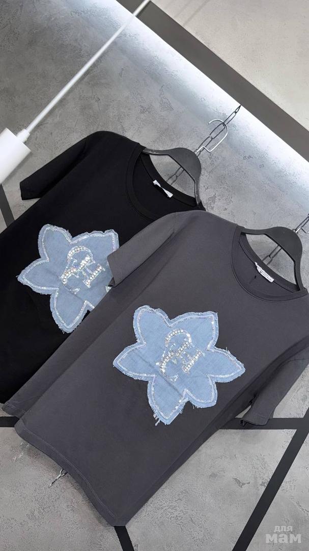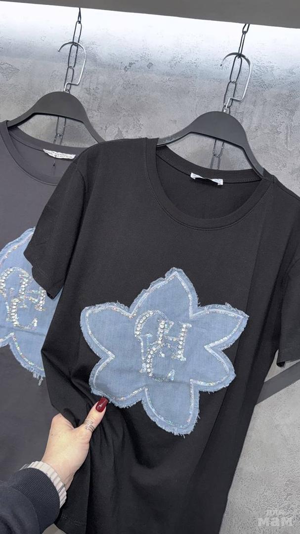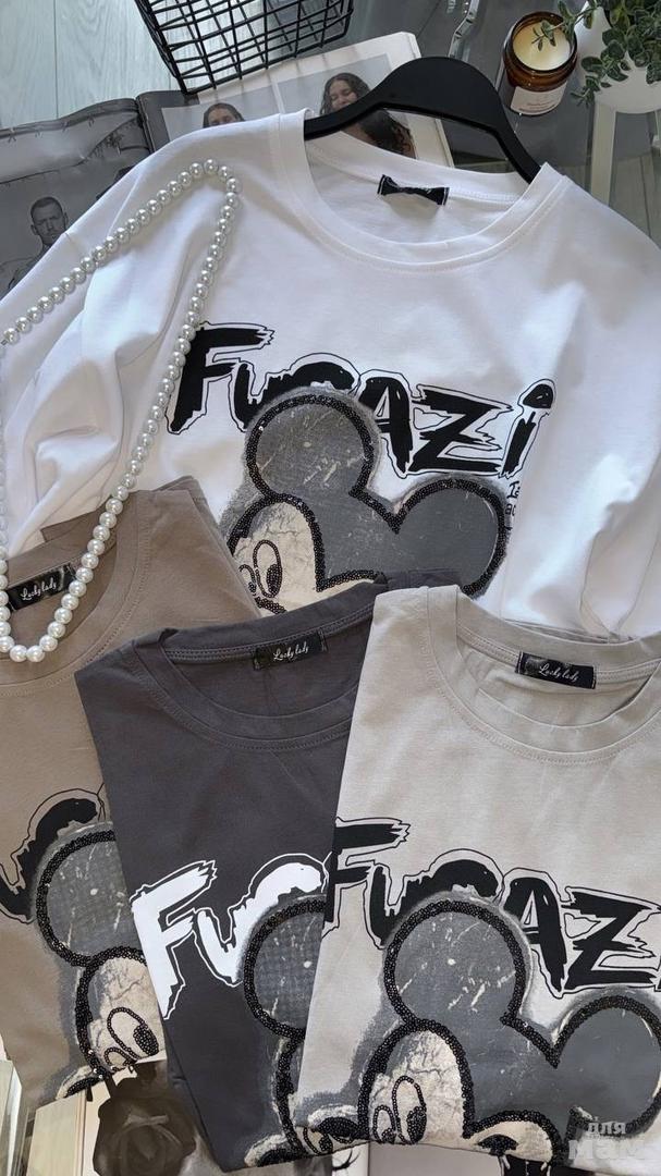 Стильная футболка с принтом - отличный выбор для тех, кто хочет выразить свою индивидуальность. Декор из пайеток. Длина изделия 70 см. Фото сделаны нами в живую. Стиль Оверсайз.ЦЕНА 850 РУБ