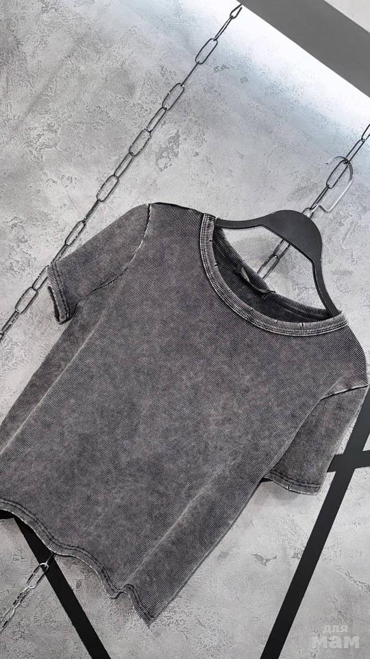 Базовая футболка в рубчик. Детали: эффект tie-dye (под варёнку) Фото сделаны нами в живую. Хорошо тянутся, длина изделия 49 см . ЦЕНА 700 РУБ