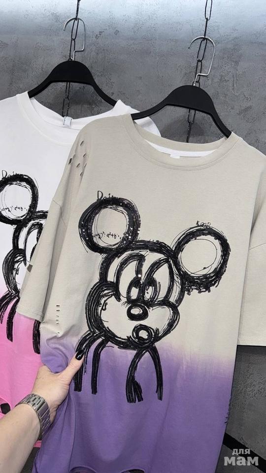 Классные футболки с Disney-персонажами декорированные пайетками. Оверсайз. Классное качество. Фото живые. Длина по спинке 78 см. ЦЕНА 900 РУБ