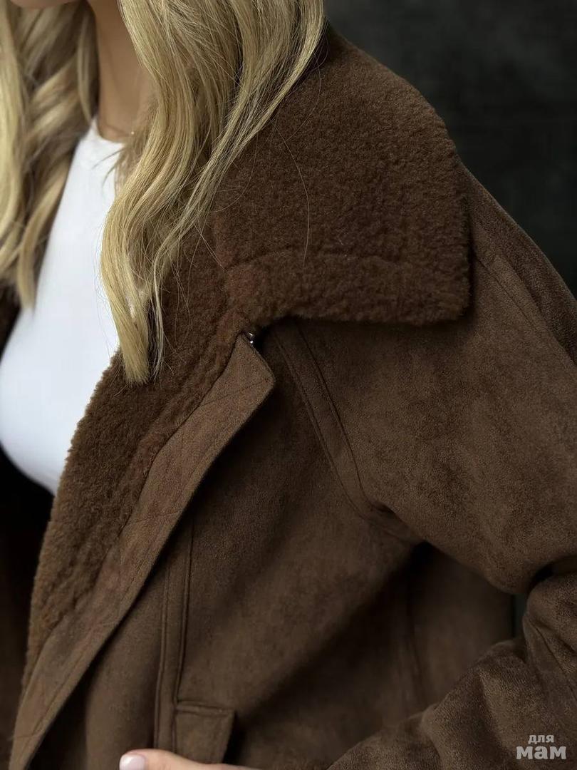 Уютная дубленка из нежной замши с роскошным меховым воротником.
