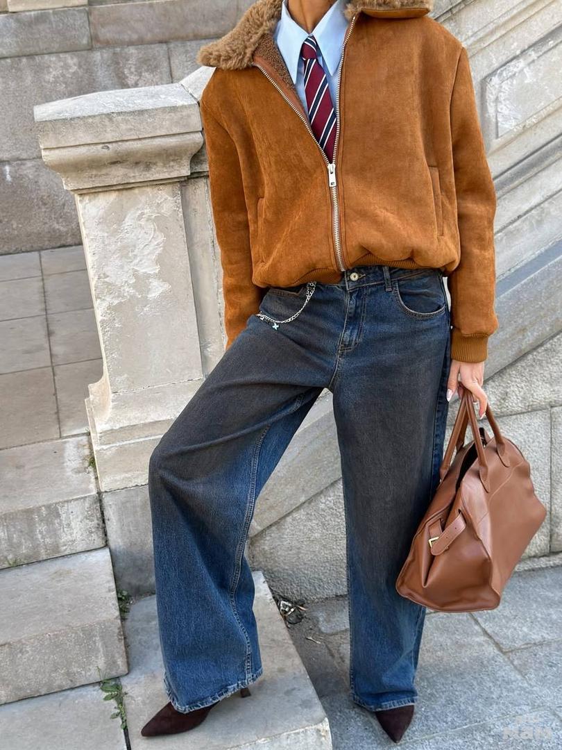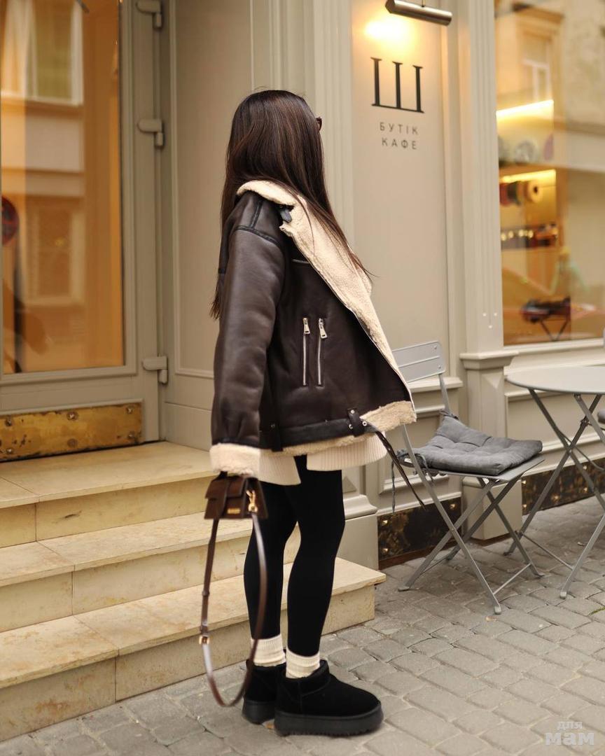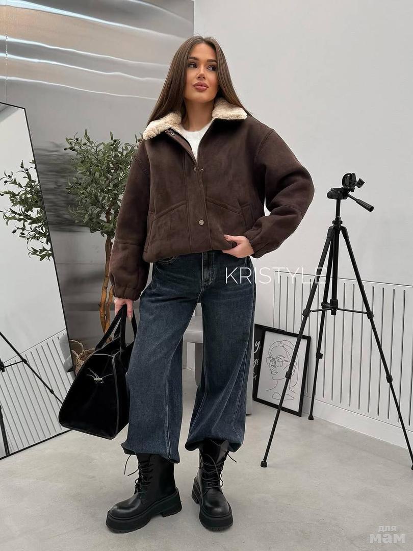 Дубленка в стиле авиатор пилот прямого кроя подойдет для каждого типа фигуры и роста.