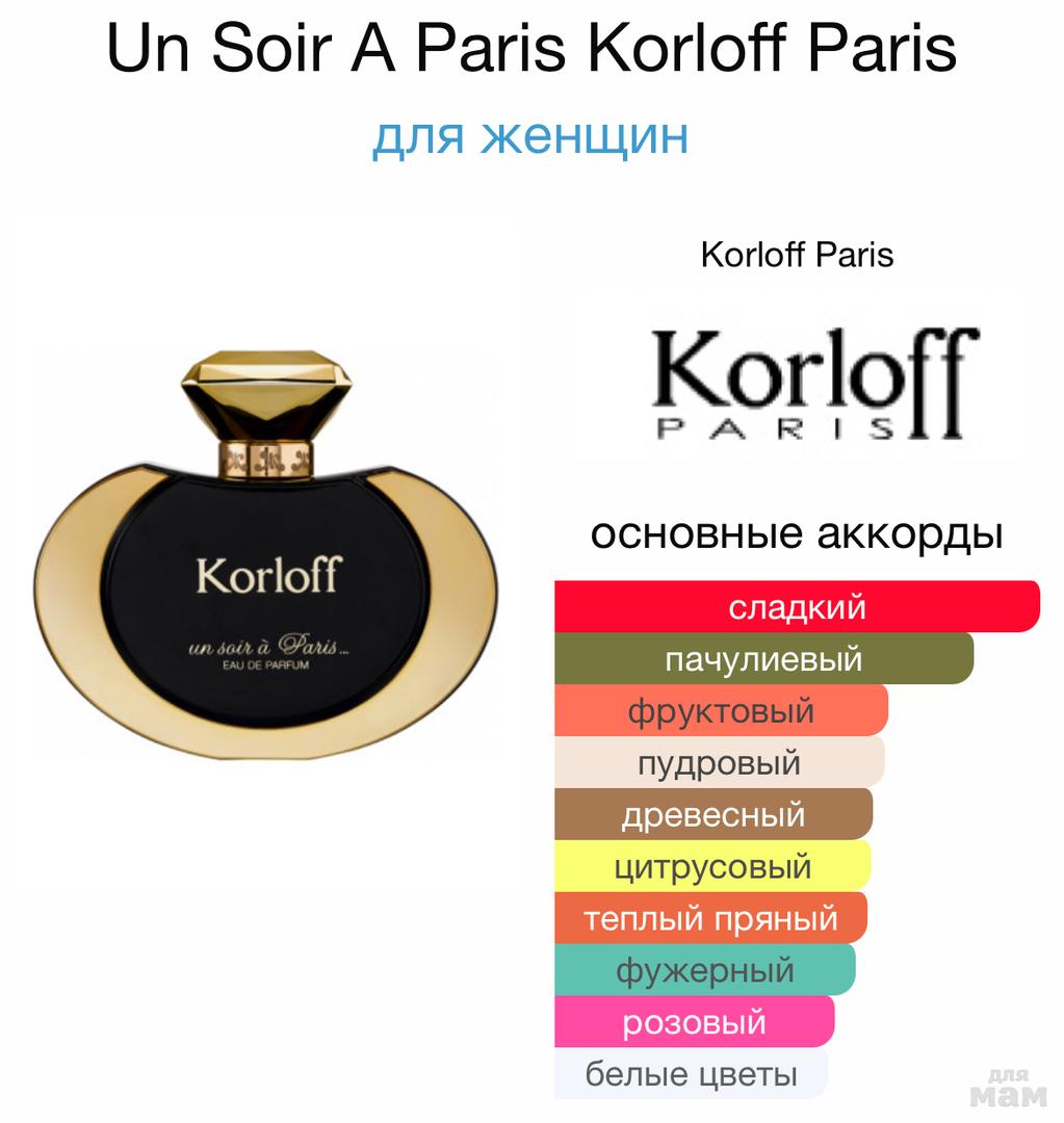 В верхнем аккорде парфюм дарит пряные ноты кардамона и розового перца. В сердце композиции специевые оттенки мускатного ореха переплетаются с утонченной чуть смолистой пряностью семян моркови. Тогда как финальный аккорд дарит хвойно-дымные оттенки могучего кедра и нежный пряно-лесной запах дубового мха, сплетающийся в долгий и чувственный ароматический шлейф.