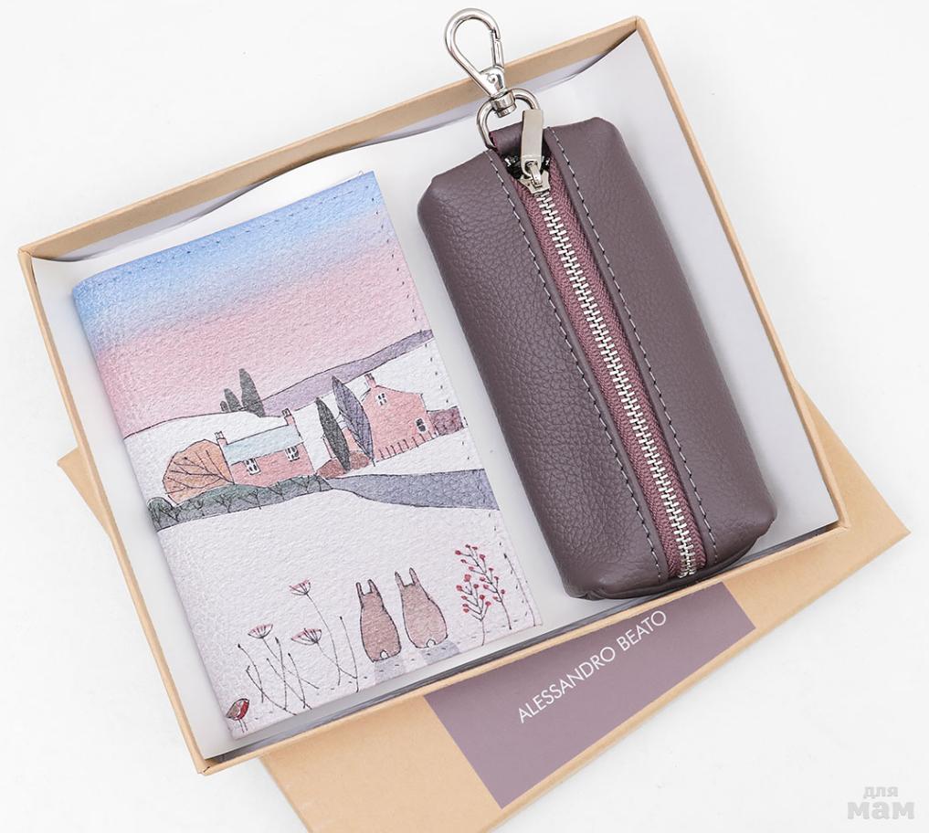 КЛЮЧНИЦА ИЗ НАТУРАЛЬНОЙ КОЖИ В ПОДАРОЧНОЙ КОРОБКЕ БРЕНДА ALESSANDRO BEATO ТЁМНО-ФИОЛЕТОВОГО ЦВЕТА кab24