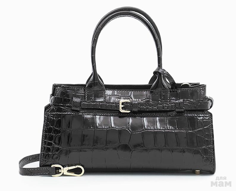 МИНИАТЮРНЫЙ ТОУТ ОТ CHRISTIAN VILLA ИЗ НАТУРАЛЬНОЙ КОЖИ ПОД КРОКОДИЛА ЧЕРНОГО ЦВЕТА