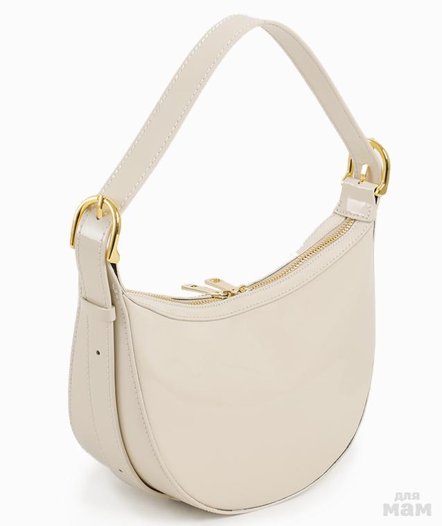 СУМКА-БАГЕТ ЛУННОЙ ФОРМЫ В РАЗМЕРЕ S ОТ CHRISTIAN VILLA ИЗ ЛАКОВОЙ КОЖИ ОТТЕНКА КРЕМ-БРЮЛЕ