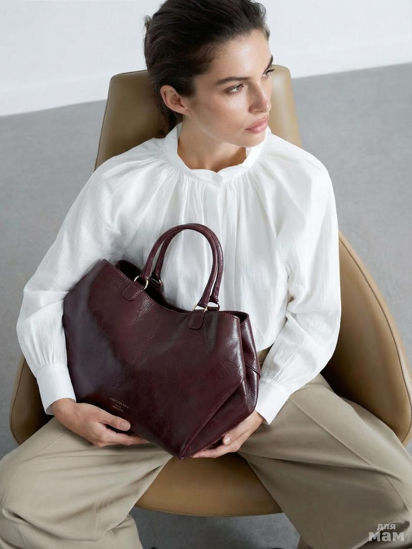 ТОУТ С КОШЕЛЬКОМ И УЗКИМ РЕМНЕМ НА ПЛЕЧО ОТ CHRISTIAN VILLA ИЗ НАТУРАЛЬНОЙ КОЖИ БОРДОВОГО ОТТЕНКА