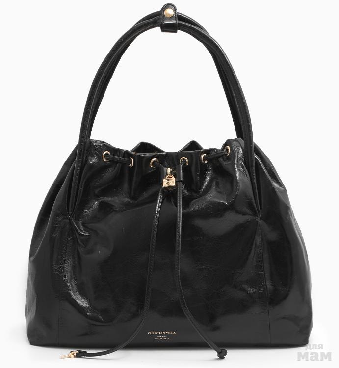 ЧЁРНАЯ СУМКА-ТОУТ С КОЖАНЫМИ СКЛАДКАМИ И ЛОГОТИПОМ CHRISTIAN VILLA