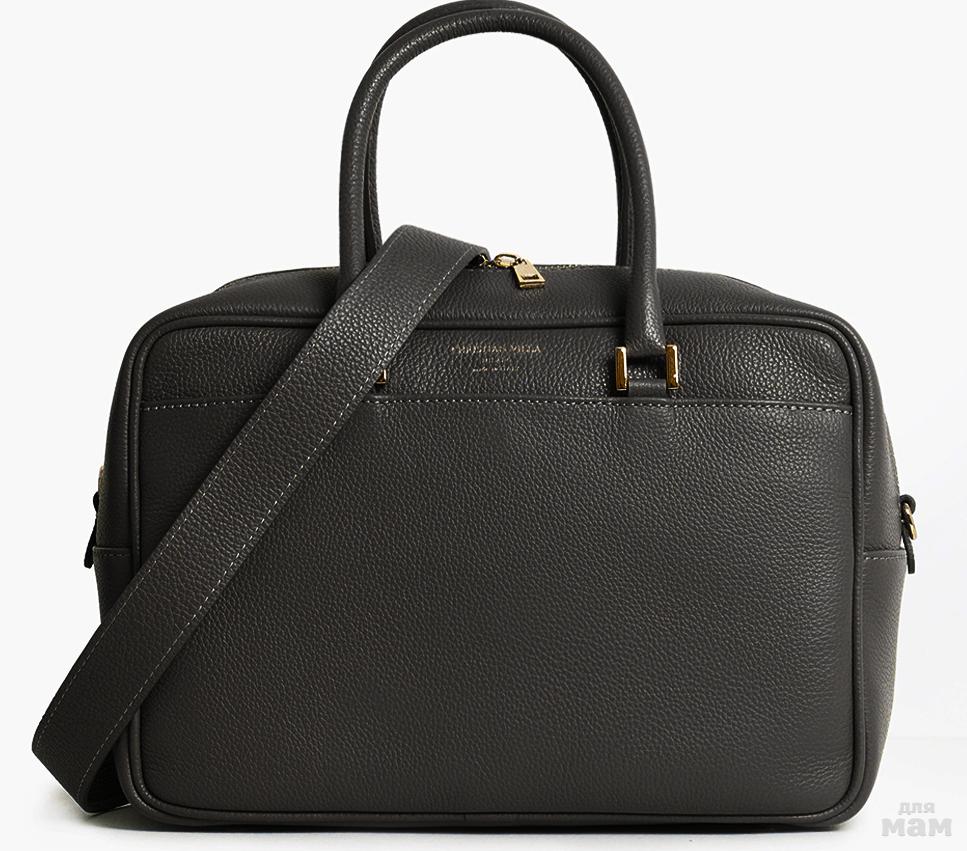ПРЯМОУГОЛЬНАЯ СУМКА-ТОУТ С ФИРМЕННОЙ СТРОЧКОЙ ОТ CHRISTIAN VILLA В ОТТЕНКЕ ТАУП