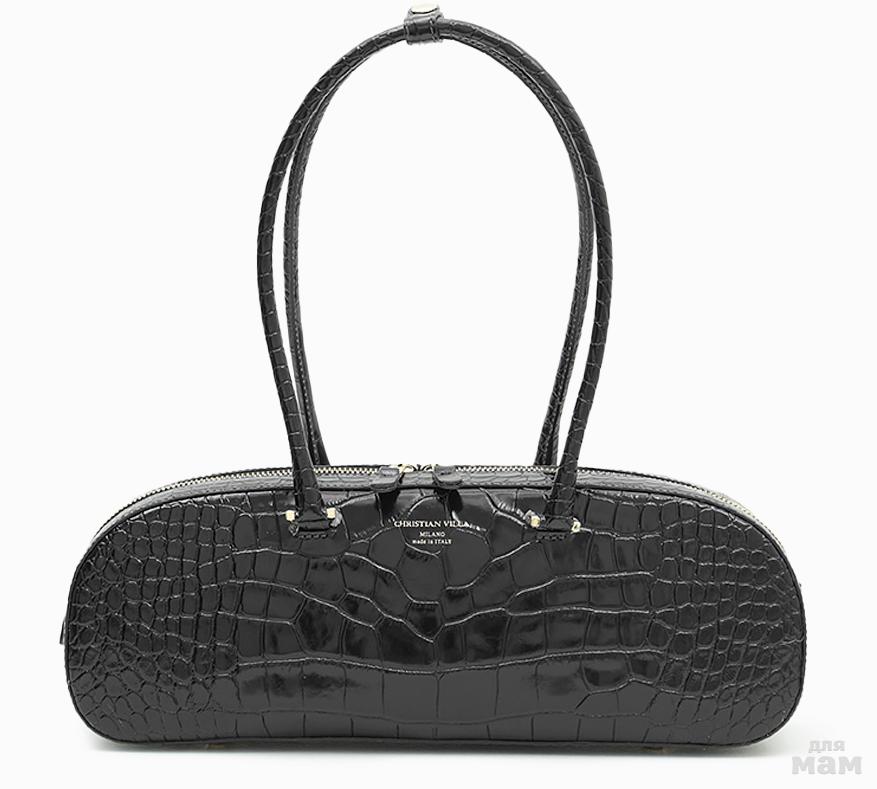 СУМКА-БАГЕТ ОТ CHRISTIAN VILLA ИЗ НАТУРАЛЬНОЙ КОЖИ ПОД КРОКОДИЛА ЧЕРНОГО ЦВЕТА