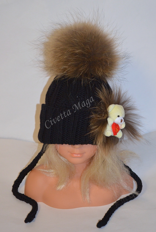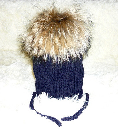 д/м, зима, узор косы, оч. теплая, двойная вязка (не двухслойная, но двойной вязки, с изнанки один цвет ниток с лица другой -поучается двойная вязка, а просто вязка в 2 нити), меринос, енот, помпон больше стандартного, 2300