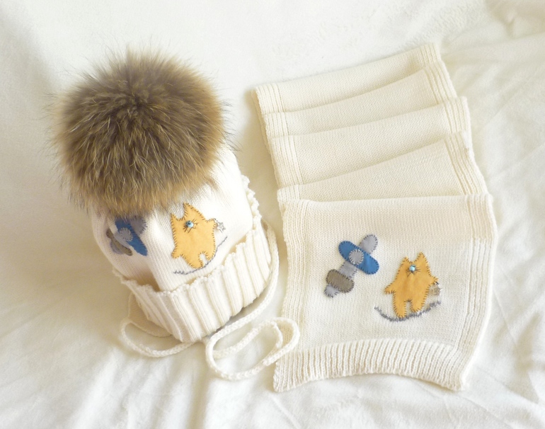 Уважаемые заказчики, если вам нужны шарфики с аппликацией, либо с таким же декором, как на шапке, сообщайте, пож-та, об этом при заказе.
