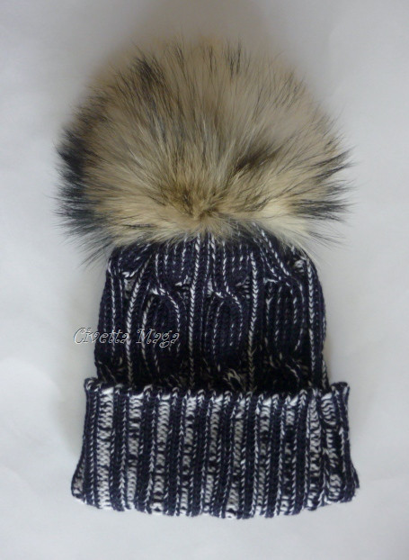 д/м, зима, узор косы, оч. теплая, двойная вязка (не двухслойная, но двойной вязки, с изнанки один цвет ниток с лица другой -поучается двойная вязка, а просто вязка в 2 нити), меринос, енот, помпон больше стандартного, 2300