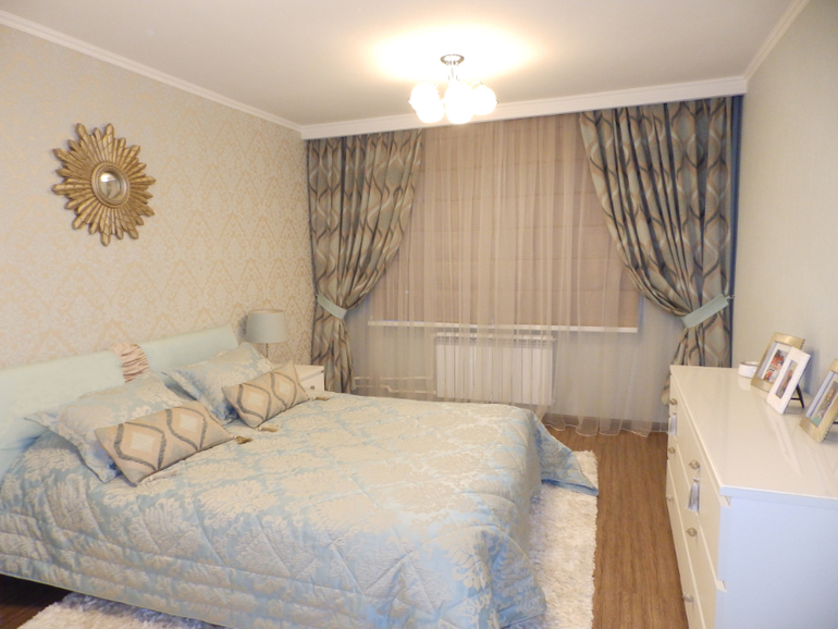 бригада по монтажу и повеске - прикрепит карнизы, погладит, отпарит, повесит шторы, положит покрывало и художественно разбросает подушки.