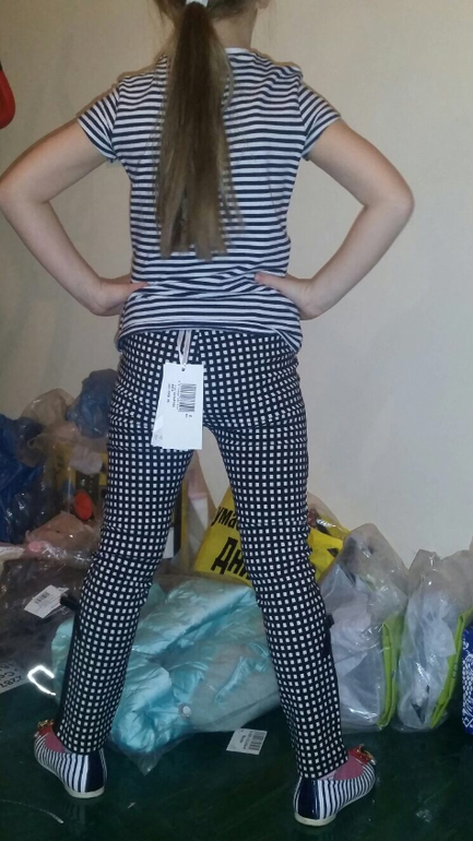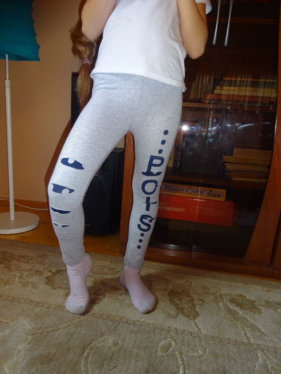 Очень классные тоненькие штанишки!!! Надпись тоже черного цвета , в садик , на занятия ! Просто идеально!