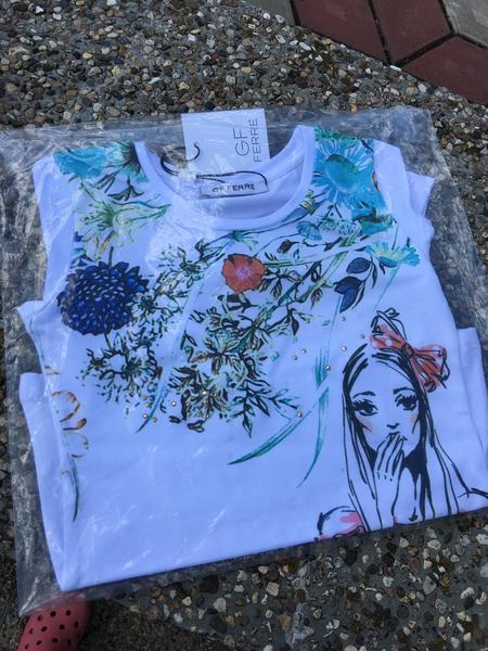 Футболочка -цена-480р цвет белый с розовым рисунком 4 года