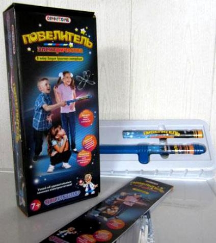 Такое развлечение украсит каждый детский праздник и любое торжество! Для начала представления следует нажать кнопку на волшебной палочке - и затейливые фигурки из фольги начнут кружиться в воздухе! По волшебной команде фигурки начнут перемещаться в любом направлении, садиться на плечи друзьям и родным и прилипать к потолку. Об устройстве и игровых возможностях волшебной палочки каждый обладатель набора узнает из красочной инструкции с подробным описанием всех действий и с интереснейшими заданиями и опытами. Детишки наглядно ознакомятся со свойствами статистического электричества, узнают о возможностях управления электрическим разрядом, а также почувствуют себя настоящими повелителями электричества. Цена: 690