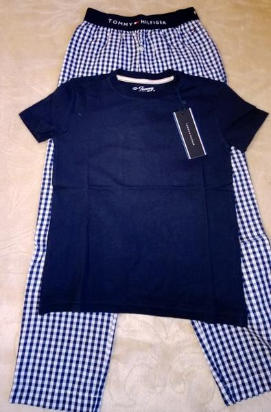 Невероятно комфортная пижама, состоящая из трикотажной футболки с коротким рукавом и клетчатых брюк из хлопкового поплина с широким эластичным поясом. Фирменная лента по внутренней стороне выреза под горло, флажок Tommy Hilfiger на груди, сплошной логотип на поясе. Легкий дышащий комплект для сна , состав: 100% хлопок,