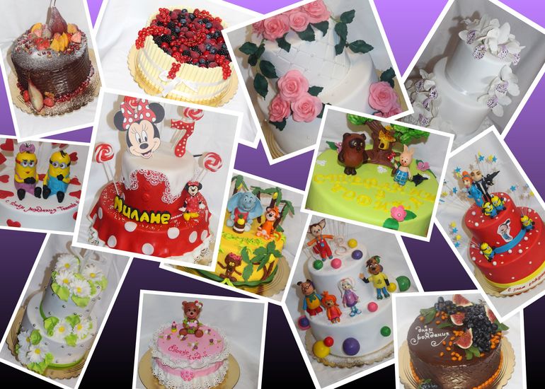 Торты: "Наполеон","Киевский", "Баунти", "Панчо", "Птичье молоко", "Медовик", "Пьяная вишня", "Молочная девочка", "Сникерс", "Чиз-кейк", "Три шоколада" и всё что Вы пожелаете.