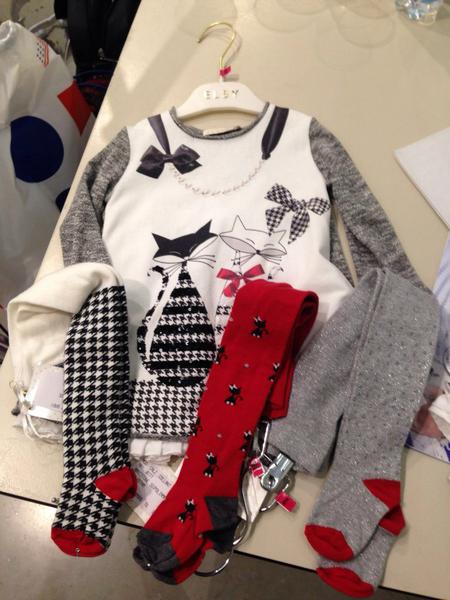 Платье с кошками и колготки слева черно белые, все на 7 лет, актуальная коллекция, цена платья 4100, колготки 1500р.