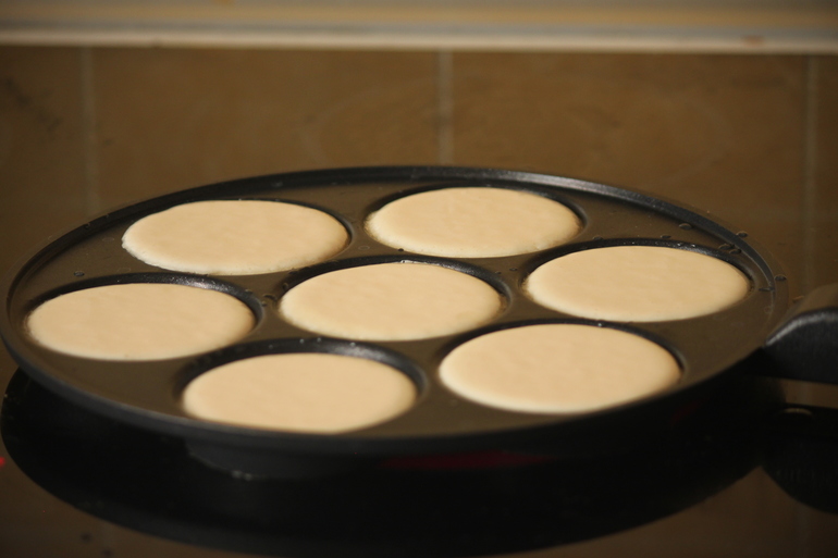 дайте я похвастаюсь! наконец-то получила свою сковородку- такая серьезная, весьма увесистая- можно и мужа воспитать, если что! жарили яйчницу- получились такие толстенькие идеально круглые кружочки. правда, рисунок плохо виден. потом взялась за блинчики- нашла в нете первый рецепт панкейков, замутила и нажарила- детеныш просил еще лягушек. потом решил, что это все-таки колобок. сама сковорода прогревается отлично, ничего не липнет, все вынимается шикарно. блинчики жаряться 3-4 минуты и так же быстро съедаются. незнаю, как будет держаться покрытие- знаю, многие не решились брать- вдруг быстро облезет. но я пока в восторге. и даже супружник решилзавтра осчасливить фирменными сырниками(почти год ждали этого момента)