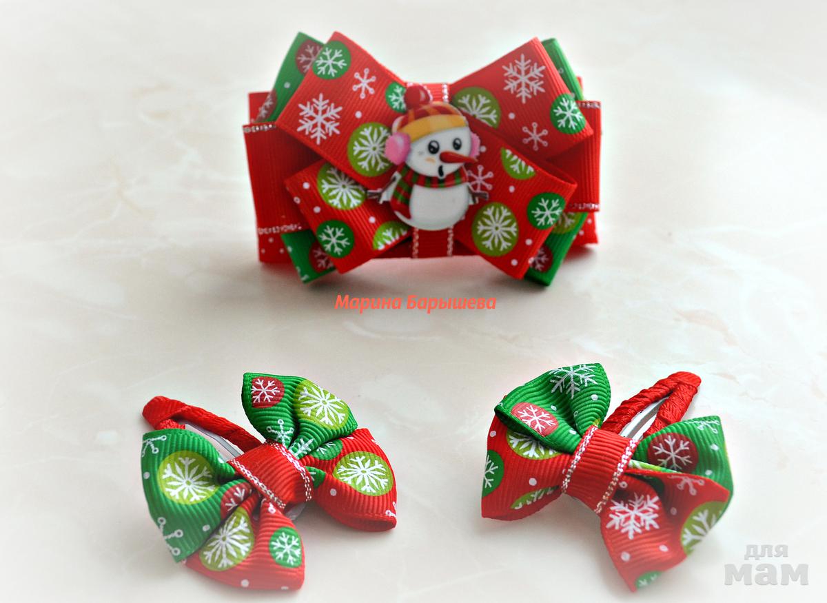 Пушистые бантики с зимней тематикой. Основа на выбор: резинка либо зажим. 220 руб пара.