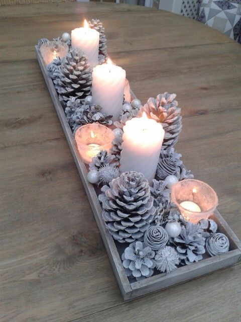 да и просто красивые свечи и банки из-под съеденного меда и варенья, покрытые искусственным инеем ...