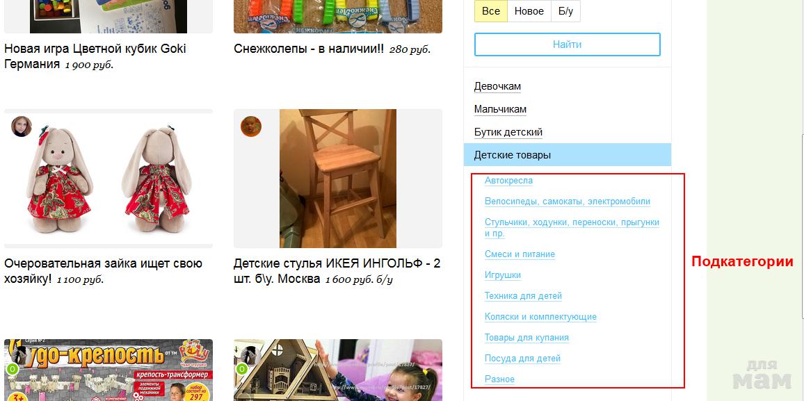 В каждой КАТЕГОРИИ есть ПОДКАТЕГОРИИ. Если щелкнуть мышкой на КАТЕГОРИЮ, то появится список ПОДКАТЕГОРИЙ данной КАТЕГОРИИ.