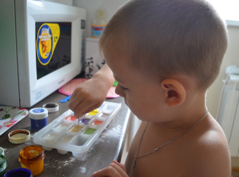 Доверить ребенку самостоятельно покрасить соль (ОТСЮДА):