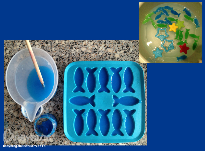 Спасибо Лизе за идею с океаном! Надо взять небольшой контейнер с водой и добавить туда немного пищ.красителя(или краски)