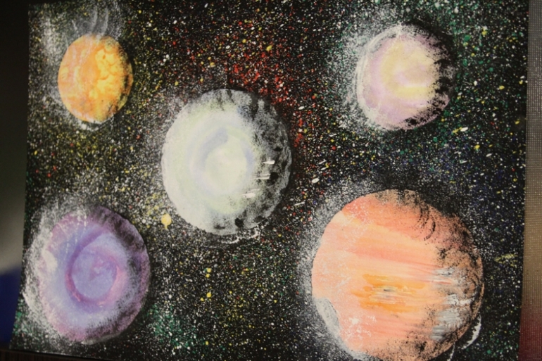 Мне очень понравилась эта тема и мы сделали вот такой фонарь. Получилось очень красиво! Дочка сказала, что там внутри Игольчатая Планета.