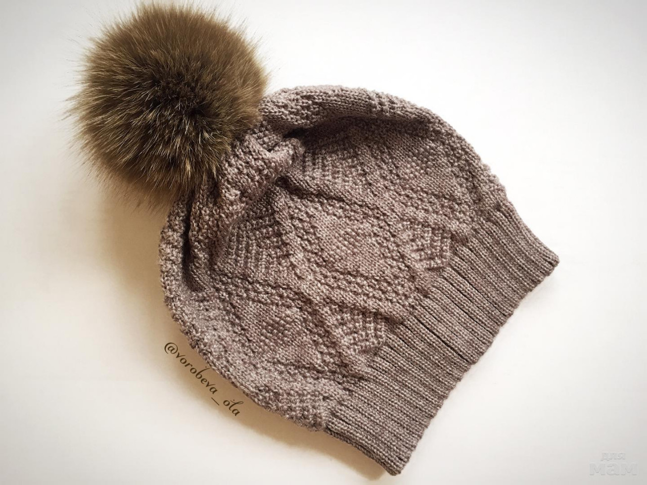 Шапка со сложным узором,машинная вязка,размер 54-58,цена 2200