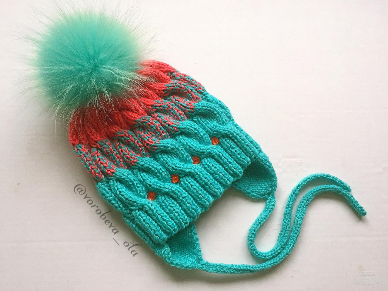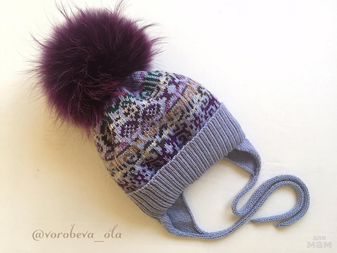 Шапка со сложным узором,машинная вязка,размер 54-58,цена 2200