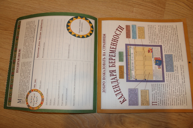 Дневник, выполненный в виде настенного календаря, охватывает 42 недели (обычный 40-недельный период беременности плюс две дополнительные недели на случай перенашивания ребенка), причем каждая страница календаря рассчитана на две недели. В календарь следует заносить не только даты, но и названия дней недели. На каждой его странице приведены интересные факты, советы и рекомендации.
