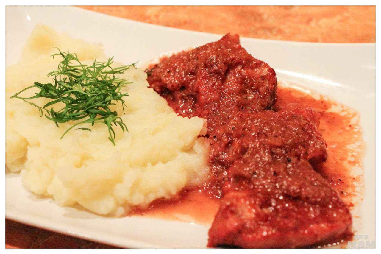 Тушеная картошка с фрикадельками из индейки, сыром и зеленью