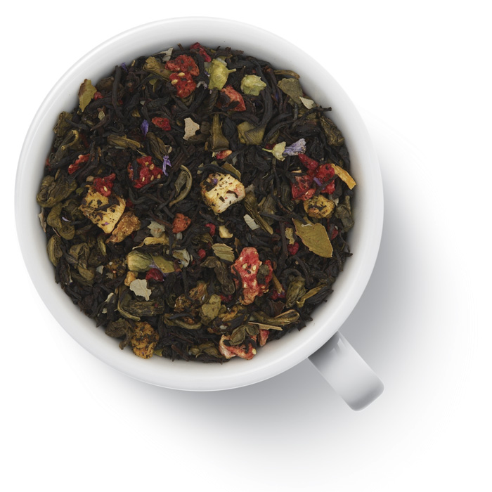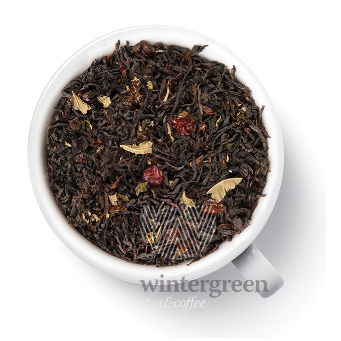 Смесь китайских, цейлонских и индийских чаев с добавлением вишни и листьев клубники. Чай ароматизирован натуральными маслами.