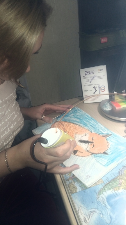 Димка увидев, что все - мной процесс налажен, уселся за работу. Скажу одно, сразу идеально не получилось. Но в процессе рисования приноровился. Даже сняли видео, на котором все более подробно попытались объяснить на примере рисования 3Д бабочки - на большее моей фантазии в вечер пятницы видимо не хватило.