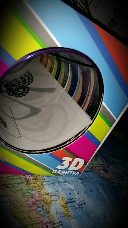 В коробочке в комплекте с ручкой оказались пробные "краски" - это бело-голубые с черным пластмасски свернутые в кольцо. Но для полета творческой фантазии этих трех цветов боюсь, будет маловато. Поэтому у нас есть еще одна коробочка с 10-тью цветами. Кстати в ней гораздо удобнее их хранить, нежели чем в таких пакетиках. Ну, это так вступление)