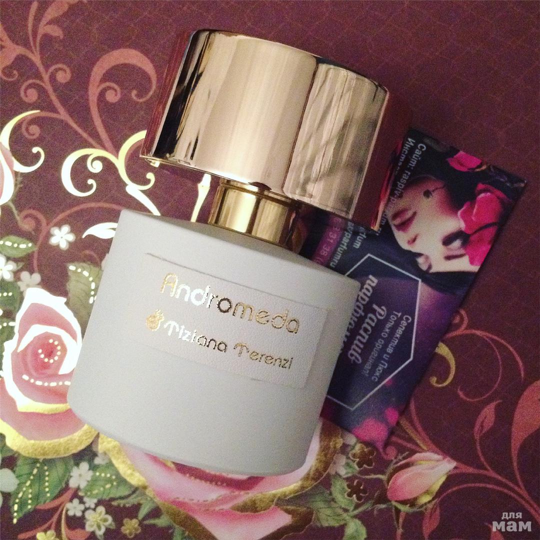 Andromeda – прозрачный, нежный и теплый, древесно-цветочный унисекс парфюм, разработанный парфюмером Паоло Терензи для сильных, целеустремленных мужчин и женщин, увлекающихся греческой мифологией и влюбленных в звездное небо. На создание мощного, длительного в звучании аромата парфюмера вдохновило очарование цветения деревьев и разнотравья горы Сибиллини в Италии. Выпущен аромат итальянским нишевым брендом Tiziana в 2015 году под наименованием «Андромеда» и входит коллекцию «Луна». Парфюм упрятан в светлый цилиндрический флакончик с плоской золотистой крышечкой с выгравированным сверху изображением зодиакального круга. Верхний аккорд аромата образуют освежающий, шипучий бергамот, теплый, цветочно-пряный иланг-иланг и травянисто-сладкие ноты сена. Сочетание душистой, царственной лилии с ароматом нежной, трогательной фиалки, бархатисто-медовой дамасской розы и сочной сладковатой груши создают изысканное сердце парфюма. Искристая, аристократическая амбра с нотами терпковато-пряной ванили, сладковато-дымными бобами тонка и теплым, бархатистым древесным запахом кашемирового дерева ложатся в базу аромата, подчеркивая его утонченность.