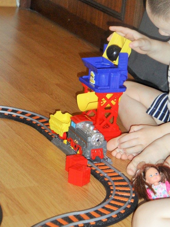 Батареечные отсеки в паравозиках и маяке так запрятаны, что мы даже не сразу нашли)) это + для детей на мой взгляд.