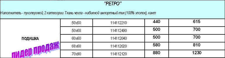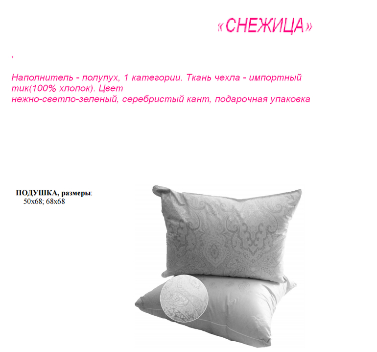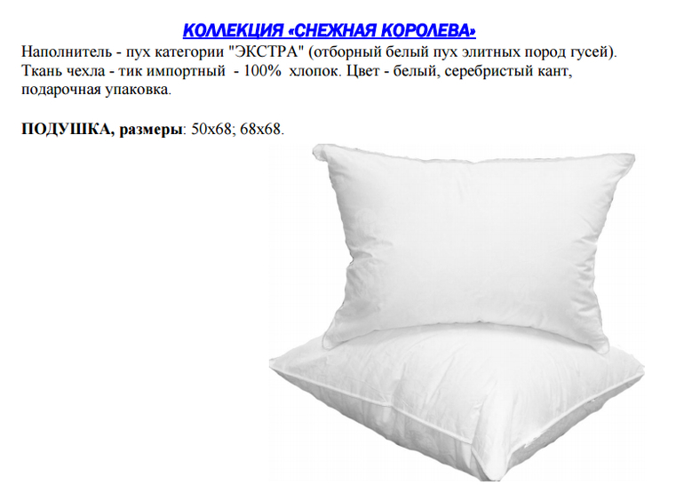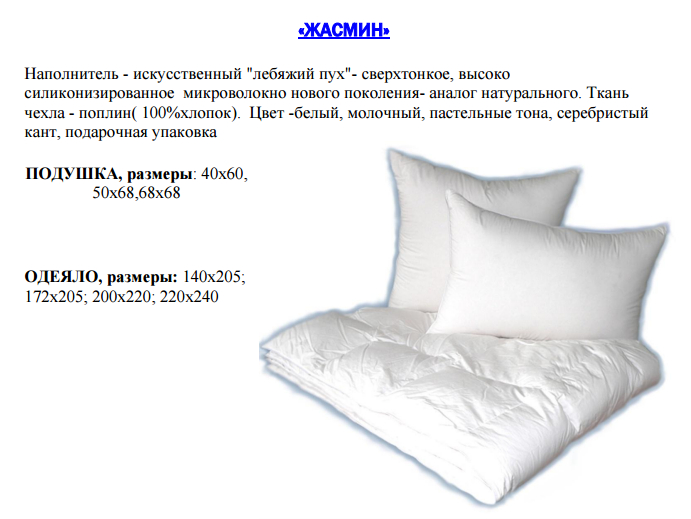 ПРОДУКЦИЯ С НАПОЛНИТЕЛЕМ ИСКУССТВЕННЫЙ «ЛЕБЯЖИЙ ПУХ»