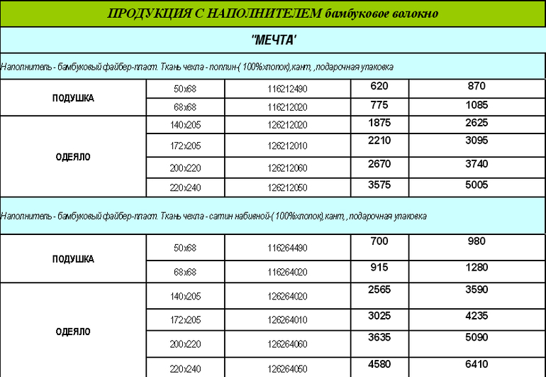 ПРОДУКЦИЯ С НАПОЛНИТЕЛЕМ «БАМБУКОВОЕ ВОЛОКНО»