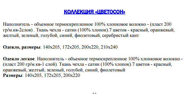 ПРОДУКЦИЯ С НАПОЛНИТЕЛЕМ ИЗ 100% ХЛОПКА