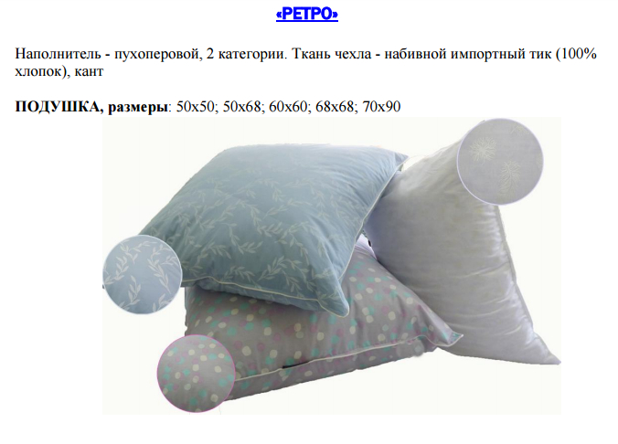 ПРОДУКЦИЯ С ПУХОВЫМ И ПУХОПЕРОВЫМ НАПОЛНИТЕЛЕМ