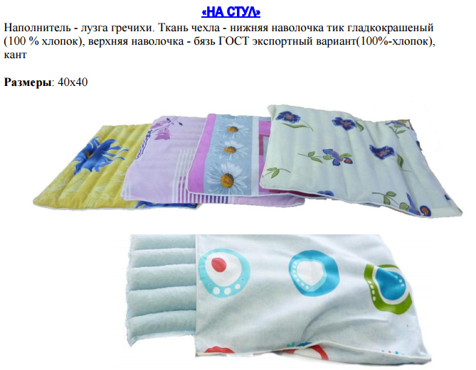 Изделия компания «Славянский пух» с натуральным растительным наполнителем - лузга гречихи - заслуженно пользуется большой популярностью у потребителей. Продукция с наполнителем из гречишной лузги имеет ряд лечебных свойств, таких как: нормализация кровяного давления, профилактика и лечение остеохондроза верхнего отдела позвоночника, нормализация кровообращения, снижение головных и мышечных болей и общей усталости организма, предупреждение храпа, замедление воспалительных процессов (бронхит, гайморит, воспаление среднего уха), делают ее незаменимой для использования. Оздоровительная продукция компании «Славянский пух» предназначена для профилактики целого ряда заболеваний, которыми страдают люди, вынужденные проводить большую часть времени сидя: массажный эффект подушек с лузгой гречихи способствует улучшению циркуляции крови. Лузга гречихи является природным аккумулятором биологической энергии солнца. Продукция гипоаллергенна.